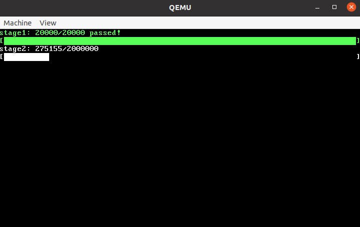 3. fork炸弹测试 (1) 如果光实现功能,那还算简单,但是实际上操作系统很大的难点不在于实现功能,而是实现功能,能够经受系统中运行的各种复杂环境的考验,并发控制和资源管理对一个操作系统尤为重要. (2) forkbomb.bin是一个用于测试fork、wait和exit的程序,里面会不断随机调用fork、wait和exit系统调用达成fork炸弹的目的,你需要成功运行fork系统调用20000两万内核pcb的数量必须为20个,内核中会有一段专门的程序检测fork的次数.测试通过的效果图如下: (3) (自我提高内容,自己想做就做,不用写进报告,禁止内卷)上面的两万次还算小打小闹,检验内核程序基本的并发控制和资源管理,而这次需要你成功运行fork系统调用2000000两百万次,预计耗时若干小时,这基本上能将你实现的系统调用的并发问题都暴露出来,虽然关中断很有效,但是希望你在做这个实验的时候能尽量少关,尽可能将你的并发问题暴露出来,如果你通过了这个测试就能看到我们准备的小彩蛋.